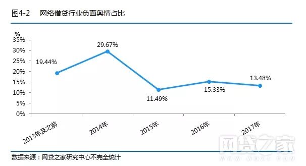 随着监管的持续进行,行业已然步入健康有序发展的道路,从负面舆情数据来看,2017年负面舆情占比下降为13.48%,一方面表明了监管政策实施的有效性;另一方面说明平台对自身品牌的维护重视度提高,再加上部分无法合规的平台多数都选择主动退出行业,使得整个行业发展进入良性健康状态,由此也可估计未来该行业的负面舆情占比将继续降低。